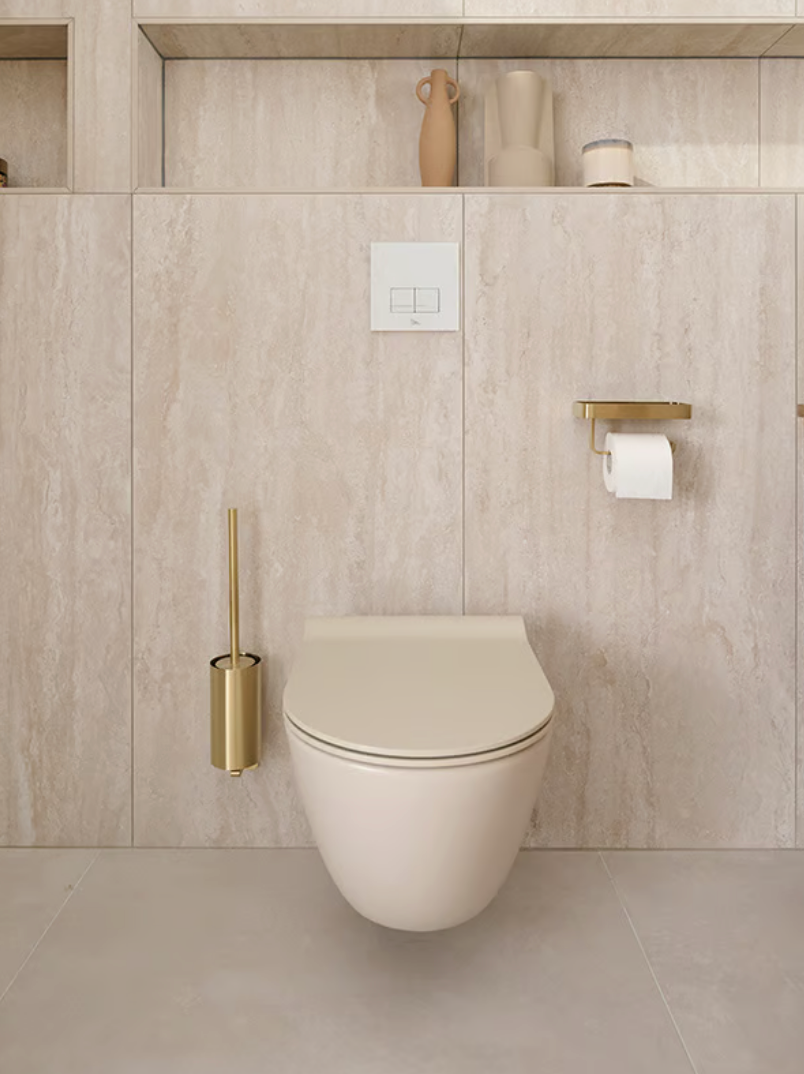 Beige is een kleur die we uit vorig jaar meenemen naar 2026. Waar het in 2025 een echte trendkleur was, zien we nu dat het de basis vormt in veel badkamers. Niet gek, want het is een rustgevende kleur en er kunnen makkelijk andere kleuren mee gematcht worden. In dit jaar staan de warme kleurtinten centraal en veelal zijn deze afkomstig uit het kleurenpalet van beige. Wit en grijs maken plaats voor crème, bruin, houtlook en zandkleur. Aardse tinten zoals terracotta, salie- en olijfgroen maken de warme en gezellige badkamer oftoiletruimtehelemaal compleet. De combinatie van deze kleuren zorgt voor een rustgevend en sfeervol geheel.